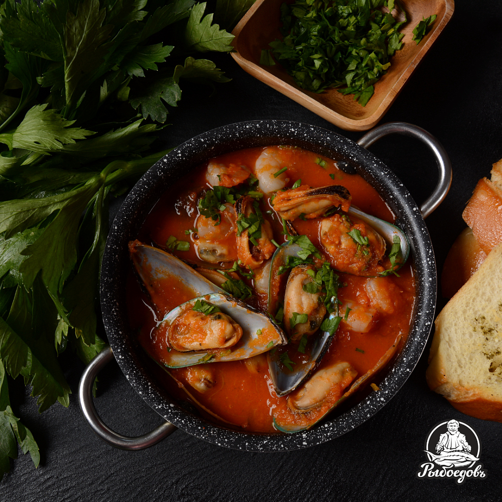 Мидии тщательно промойте, удалите все открытые и поврежденные ракушки.
