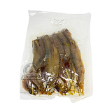 Юкола вяленая кижуча – это вяленое мясо рыбы, приготовленное по особой методике, которая требует сноровки и определённых навыков. Это своеобразная альтернатива консервам, придуманная народами севера для сохранения продукта на длительное время. Только юкола гораздо вкуснее и полезнее любых консервов. Кижуч перед вялением определённым способом разделывают, надрезая филе порционными кусочками, которые легко и удобно отделять от готового продукта. По итогу получается пласт с характерными надрезами. Юкола из кижуча выходит сочной, мягкой и фантастически вкусной. А в дуэте с бокалом холодного пива просто умопомрачительно вкусно. Лучшего сочетания сложно представить. Попробуйте и убедитесь сами.