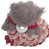 Композиция создана ручной работой. Эксклюзив. В композиции: Плюшевый мишка романтик, 20 шоколадок Kit-kat, банка шоколадного крема Nutella и 10 конфет Rafaello.