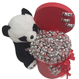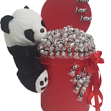 Панда игрушка гипоаллергенна. Композиция средних размеров. подойдет для детей и любимой женщины.