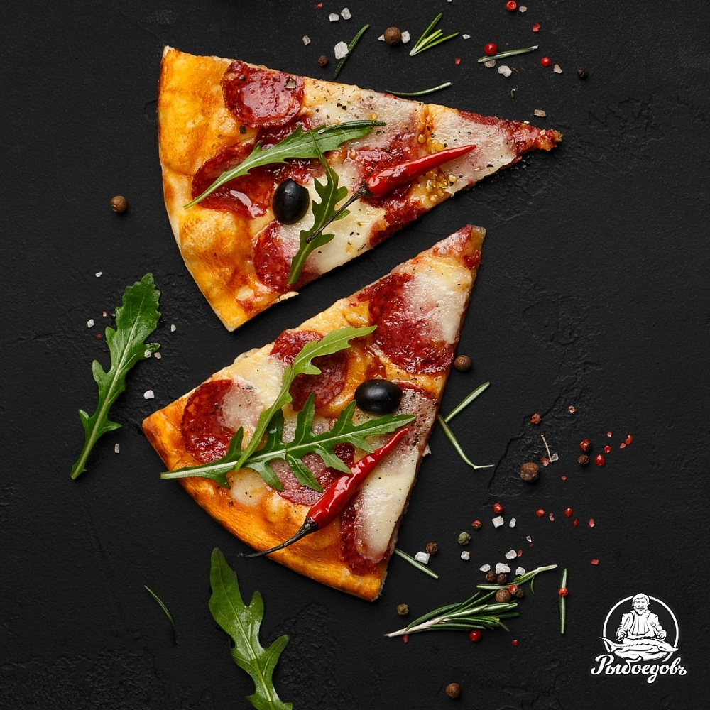 Выньте пиццу из духовки и украсьте свежей рукколой. Подавайте горячей.
