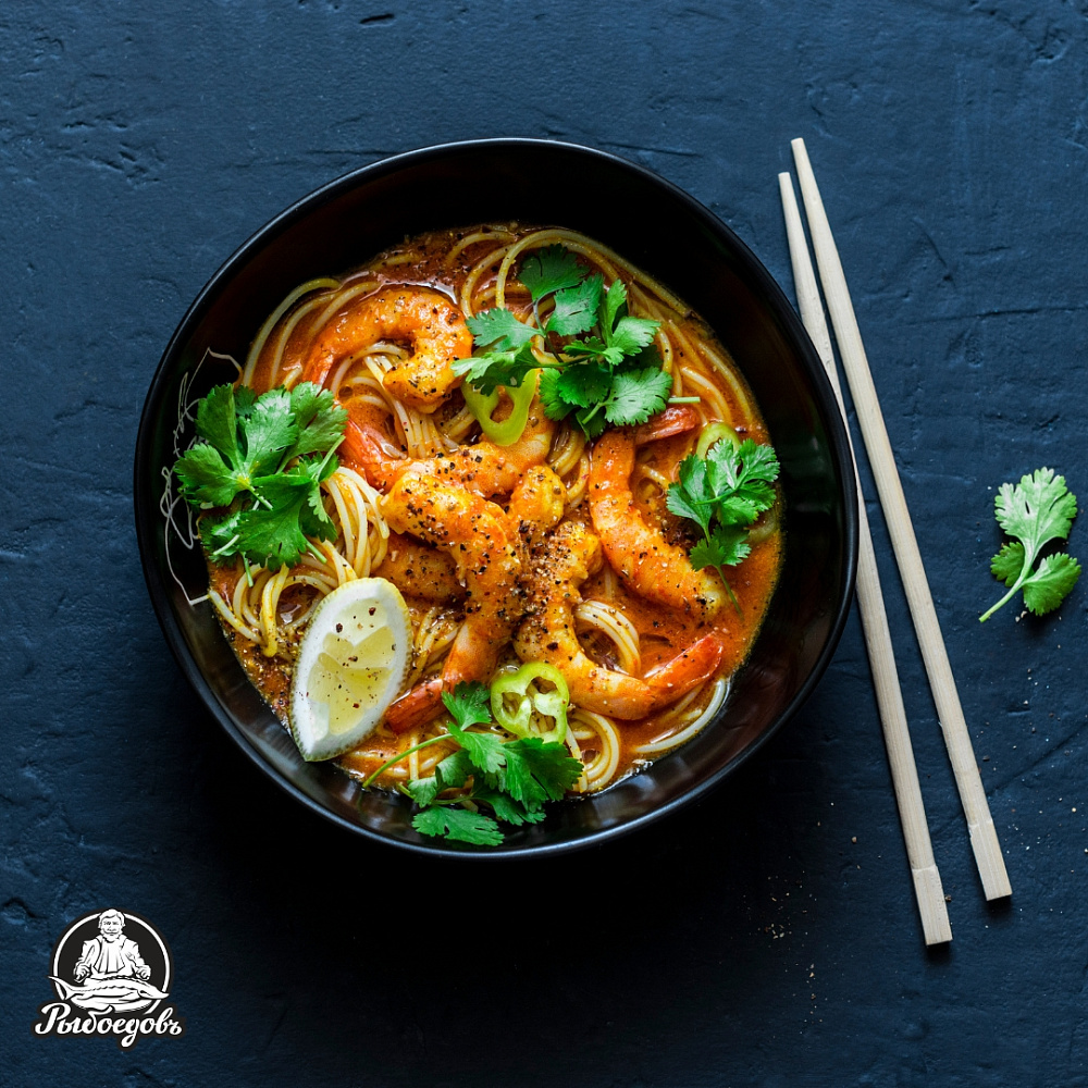 Добавьте рисовую лапшу в суп, варите еще 3-5 минут до готовности лапши.