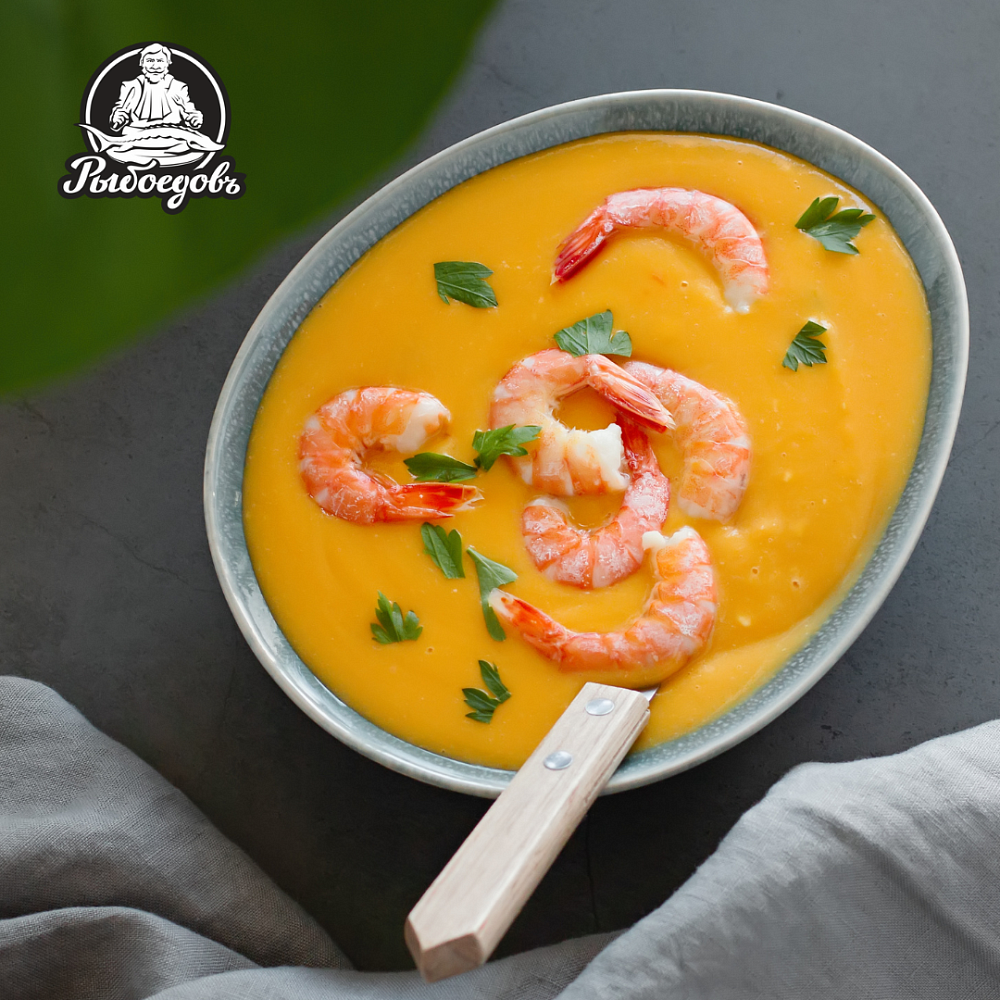 Тыквенный суп с креветками - очень оригинальный насыщенный и необычный вкус