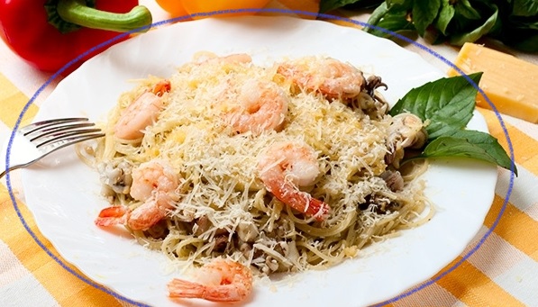 Предлагаем вам попробовать спагетти с дарами моря. Полноценное, сытное и в тоже время полезное кушанье.