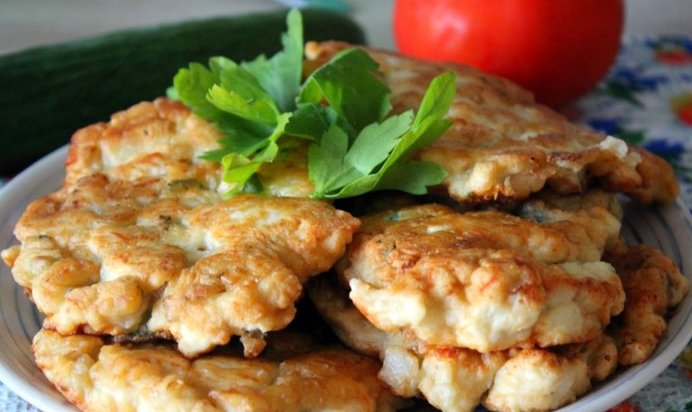 7. Вкусные и простые оладьи из куриного филе, приготовленные на сковороде, готовы.
