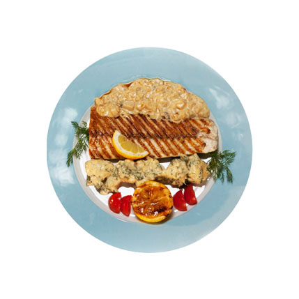 Осетрина гриль с цветной капустой и водка-соусом
