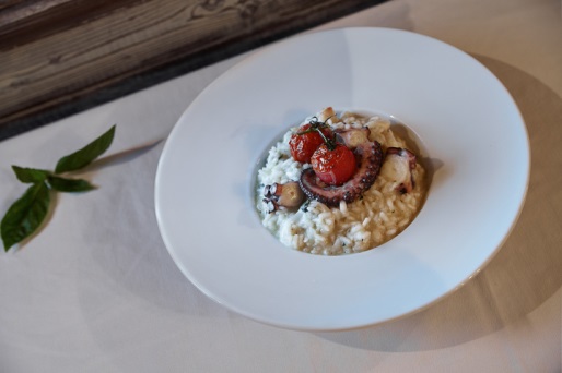Засыпаем сухой рис специальных сортов, и, помешивая, даем рису впитать жир. Вливаем белое сухое вино и даем вину впитаться в рис на маленьком огне. После этого начинаем подливать горячий креветочный бульон небольшими порциями. Каждую новую порцию добавляем после того, как впитается предыдущая. Периодически помешиваем рис и готовим его около 25 минут до мягкости рисинок. Морепродукты очень вкусны со жгучим красным перцем, поэтому можно добавить в готовое ризотто немного толченного сухого чили. Солим по вкусу и добавляем порезанные на кусочки осьминожки. Все, можно подавать ризотто с осьминогами к столу.