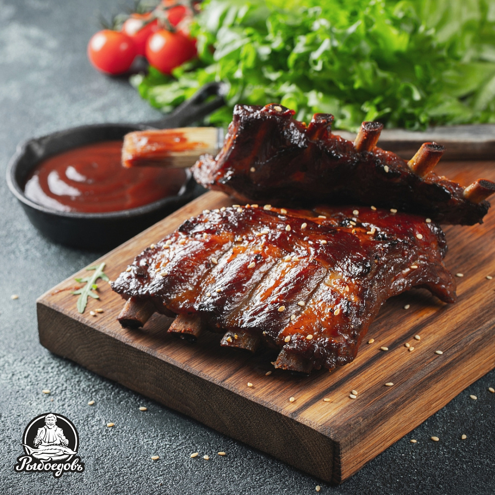 Выньте рёбра из маринада и уложите их на противень, выстиланный фольгой или пергаментной бумагой.